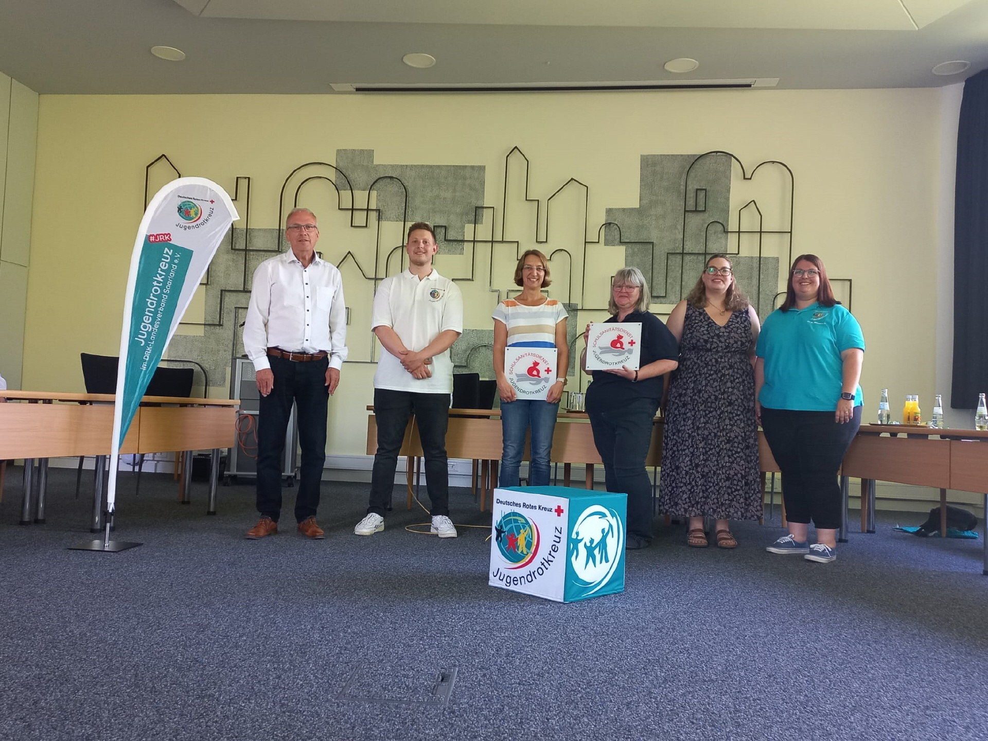 Um dieses besondere Engagement zu würdigen, wurde während eines Festaktes von Landrat Udo Recktenwald die Schulsanitätsdienst-Plakette überreicht.