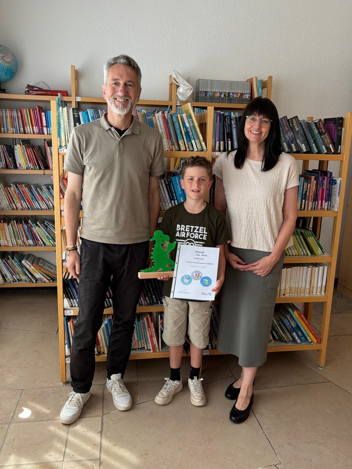 Liams herausragende Leistung wurde mit dem ersten Platz belohnt - ein großer Erfolg für ihn und die gesamte Schule! Nun darf er die Region beim Landesvorentscheid des Lesedino-Wettbewerbs am 11. Juni 2025 in Saarbrücken vertreten.