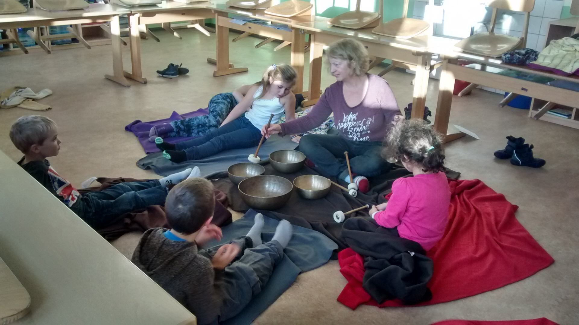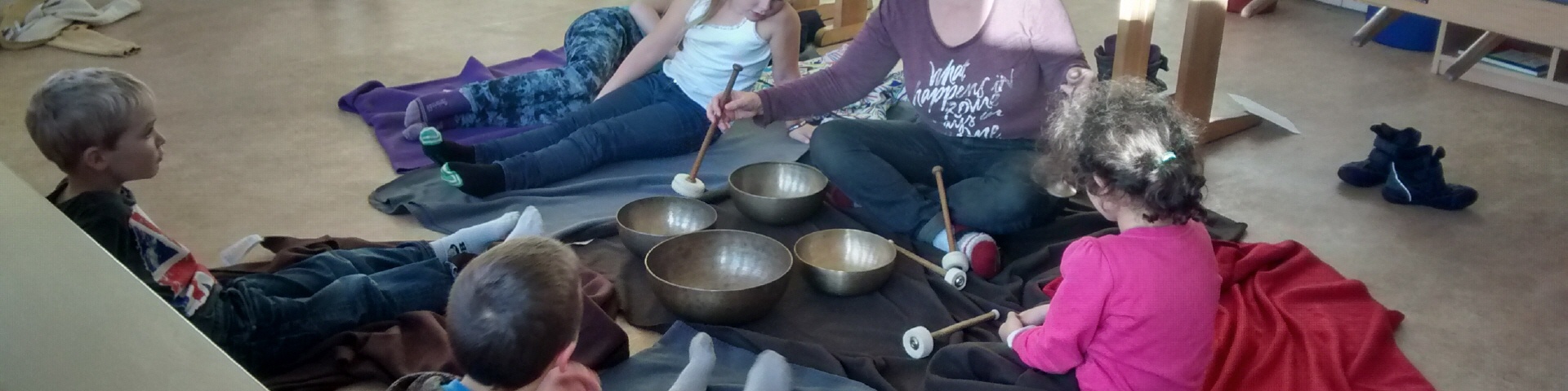 Bereits zum zweiten Mal in diesem Jahr fand an der freiwilligen Ganztagsschule (FGTS) des Schulstandortes Sötern das Projekt "Entspannung mit Klangschalen" statt. Dazu besuchte Frau Pia Baltes, die das Projekt durchführte, ein- bis zweimal wöchentlich für jeweils anderthalb Stunden die FGTS. Das Projekt erstreckte sich über einen Zeitraum von acht bis zehn Wochen. Frau Baltes nutzte neben den beruhigenden Klängen der Klangschalen auch Übungen aus dem autogenen Training. Dies soll den Kindern helfen, sich auch nach Ende des Projekts in Alltag und Schule besser entspannen zu können. Das Projekt fand regen Anklang bei den Kindern der Nachmittagsbetreuung. Pro Sitzung nahmen etwa 17 Kinder aus allen Klassenstufen (Klasse 1-4) teil.