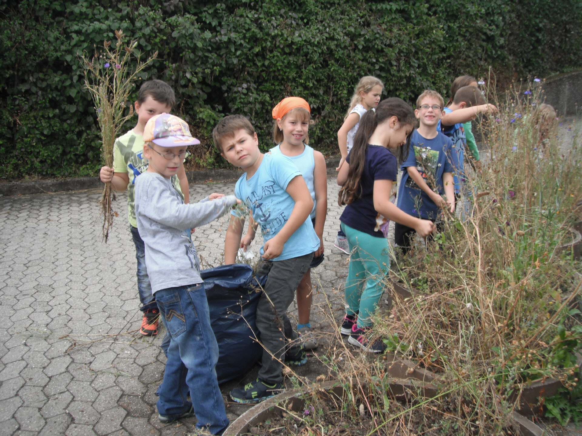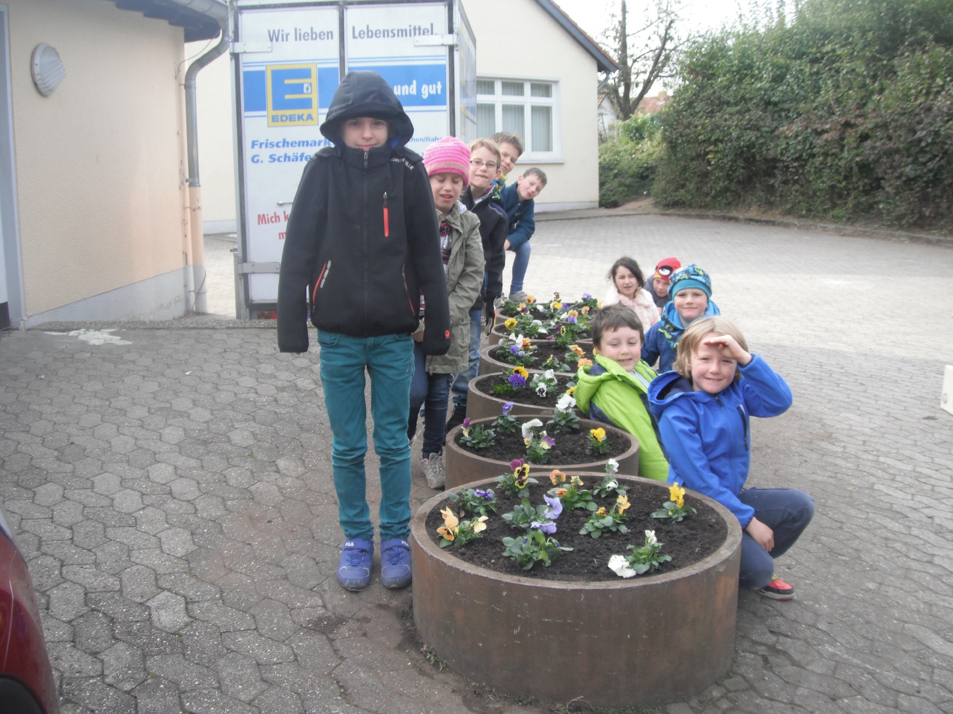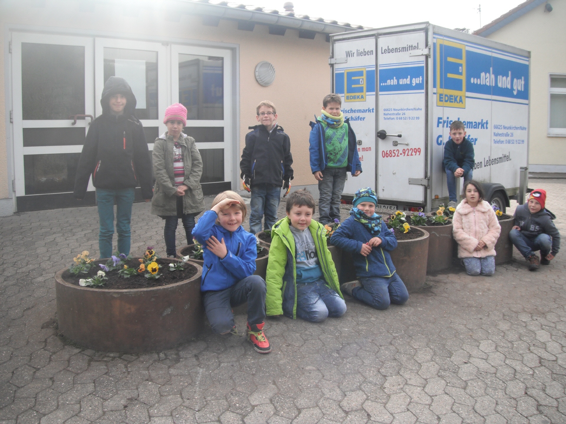 Sich mit der Natur zu beschäftigen ist ein pädagogisches Anliegen unserer Schule. Die Mitarbeiter/-innen der Freiwillige Ganztagsschule haben dieses Erziehungsziel mit den Kindern am Nachmittag durch praktisches Handeln umgesetzt. Unter der Leitung von Monique Becker wurden im Sommer gemeinsam die Pflanzkübel im Eingangsbereich der Freiwilligen Ganztagsschule mit Wildblumen besät. Im Herbst entfernten die Kinder die verblühten Sommerblumen und ersetzten diese durch neue winterfeste Blumen. Das blühende Ergebnis kann sich durchaus sehen lassen. Denn es verschönert den Eingangsbereich der FWGTS und der Turnhalle.