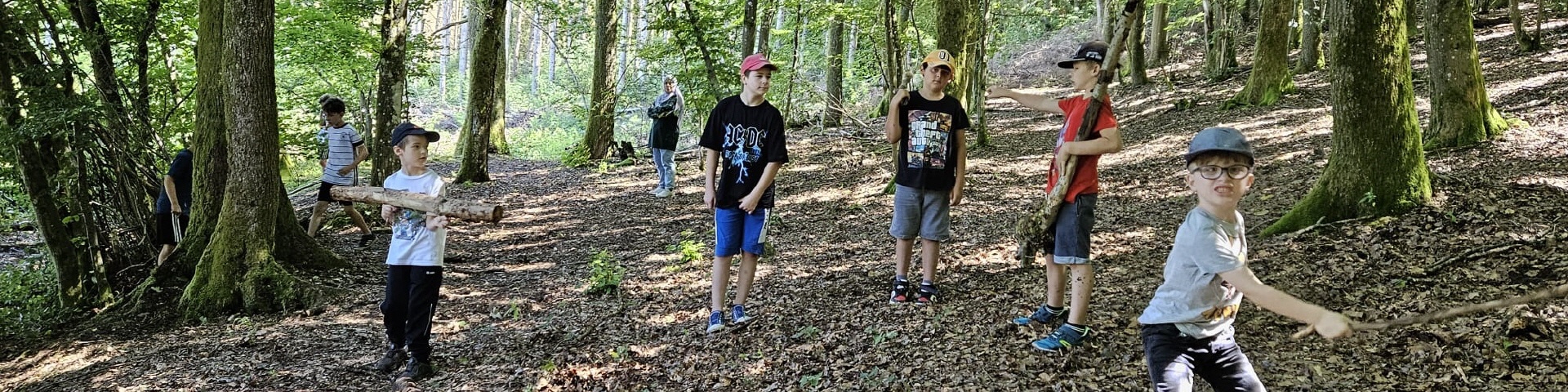 Die Schülerinnen und Schüler der Ferienbetreuung Sötern berichten über ihre Erlebnisse in der Ferienbetreuung folgendes: „Unter dem Motto „Die Natur ist der beste Spielplatz“ besuchten wir mehrmals ein nahegelegenes Waldstück. Dort