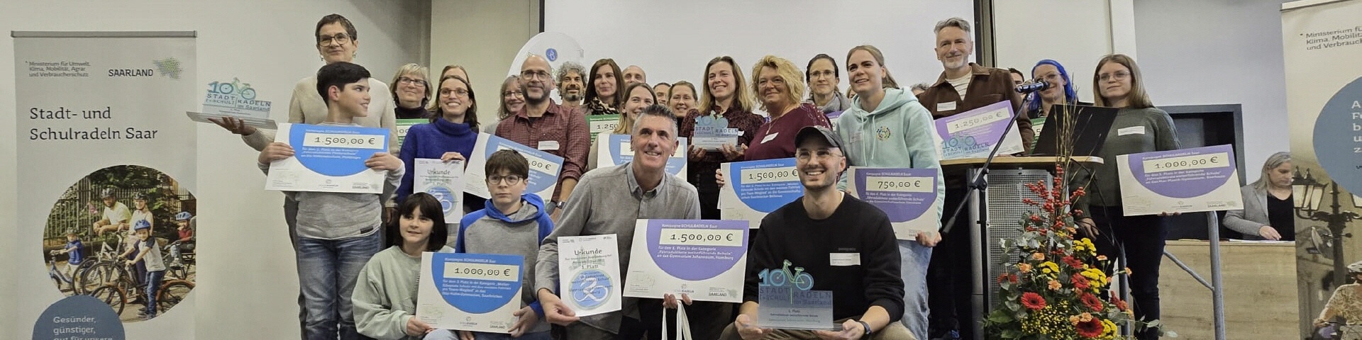 Seit Jahren beteiligt sich die Grundschule der Gemeinde Nohfelden an der Aktion Stadtradeln/Schulradeln. Auch in diesem Jahr, in dem Stadtradeln/Schulradeln saarlandweit zum zehnten Mal durchgeführt wurde, war die Grundschulgemeinschaft wieder mit dabei. Wie auch schon in den Vorjahren wurden die Kilometer, die die Schülerinnen und Schüler im Aktionszeitraum vom 01. Juli bis 21 Juli privat oder auf dem Schulweg auf dem Fahrrad zurückgelegt haben, gesammelt und eingebracht. Zusätzlich veranstalteten die beiden Grundschulstandorte Gonnesweiler und Sötern in diesem Zeitraum einen Fahrradwandertag rund um den Bostalsee. Die dort gefahrenen Kilometer wurden ebenfalls mit in die Wertung eingebracht. Insgesamt kam die Schulgemeinschaft somit auf 21.223 Fahrrad-Kilometer, die von 267 Teilnehmenden gefahren wurden. Ein tolles Ergebnis, das der Schule den zweiten Platz von 96 teilnehmenden Grundschulen im Saarland einbrachte. Die Preisverleihung fand im Rahmen des 3. Saarländischen Fahrradgipfels in Saarbrücken statt. Schulleiter Volker Morbe nahm den Preis dort in Empfang. „Ich bedanke mich bei allen, die durch ihr Engagement zum Erreichen dieser sehr guten Platzierung beigetragen haben“, so Morbe.