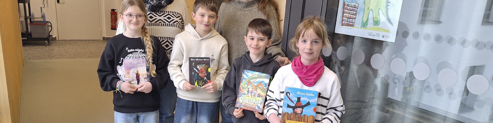 Zu diesem Anlass kamen die vier Klassensieger der vierten Klassen beider Standorte in der Schulbücherei am Schulstandort Sötern zusammen. Es waren Lion Bremm (4.1), Josh Reiz (4.1), Laura Görgen (4.2) und Jolina Wagner (4.3), die angetreten waren, um vor einer dreiköpfigen Jury ihre Lesefertigkeiten zu zeigen. Diese Jury bestand aus Sabine Nagel vom Schulförderverein, Ulla Molter, Schulsekretärin sowie Schulleiter Volker Morbe, der die Veranstaltung moderierte.